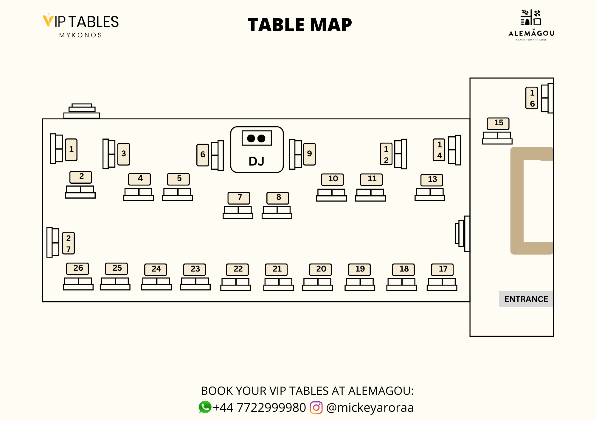 During the peak season, Alemagou operates from Monday to Sunday, welcoming guests from 10:30 in the morning until 01:00 the following day. Its laid-back bohemian ambiance has established it as a beloved destination among visitors. Whether you opt for a rejuvenating massage or dance into the sunset, Alemagou offers a place where unforgettable summers come alive. It stands as one of Mykonos’ premier beach clubs, embodying the enchantment that makes the island truly exceptional.