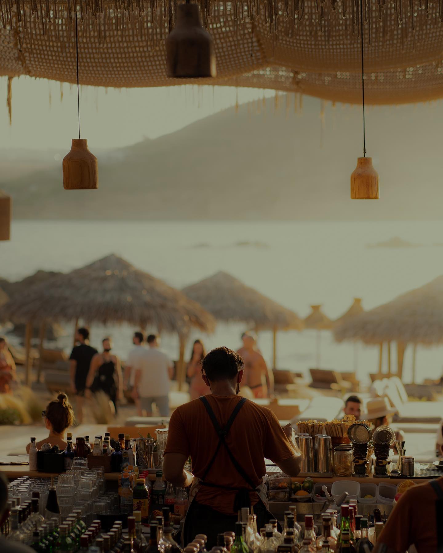 Situated on the secluded shores of Ftelia Beach in Mykonos, Alemagou has been a hidden gem since its inception in 2010. This beach bar exudes a distinct seaside charm, with earthy tones and a captivating atmosphere accentuated by the presence of trees that provide natural shade, creating a warm and welcoming environment. Alemagou Beach Bar has earned a reputation for its vibrant parties, often featuring renowned DJs who take the stage and set the mood for an unforgettable evening. Whether you’re in the mood for a refreshing cocktail or a signature drink, the attentive bar staff is always ready to cater to your desires.