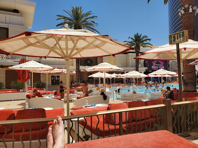 The interior design of Encore Beach Club is a testament to elegance and sophistication, capturing the essence of glamour that only a venue of its caliber can achieve. With ample daybeds, cabanas, and sunlit seating areas adorned with tables, it provides the perfect backdrop to savor drinks and music. The pool itself is both refreshing and spacious, accommodating the crowd comfortably, a feature that’s not always a given at Las Vegas pool parties.