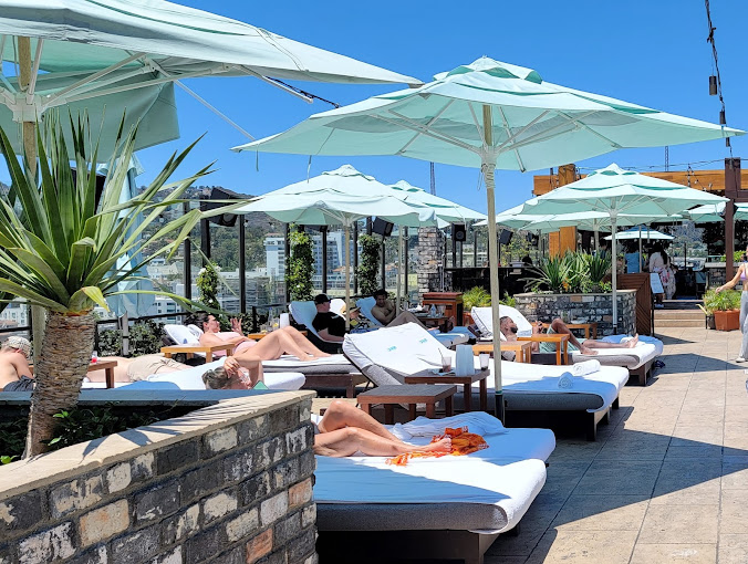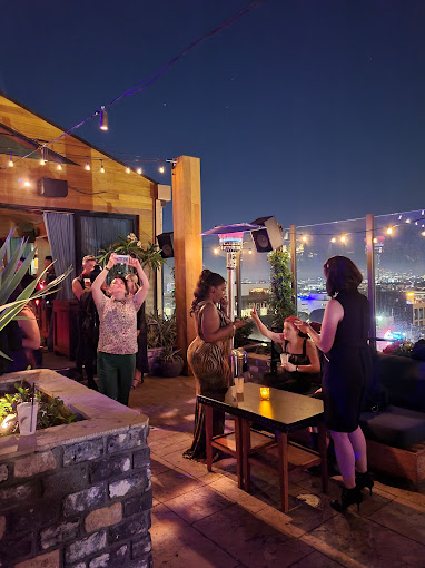 The Highlight Room also encompasses a bar and Grill. Situated at the rooftop’s far corner, opposite the pool, you’ll discover dining tables and a full-service grill where you can relish a delightful array of grilled dishes. You’ll find low tables, comfy lounge seating, and a well-stocked bar that offers bottle service for your refreshment needs. This area emanates a more laid-back ambiance, making it the perfect spot for drinks.