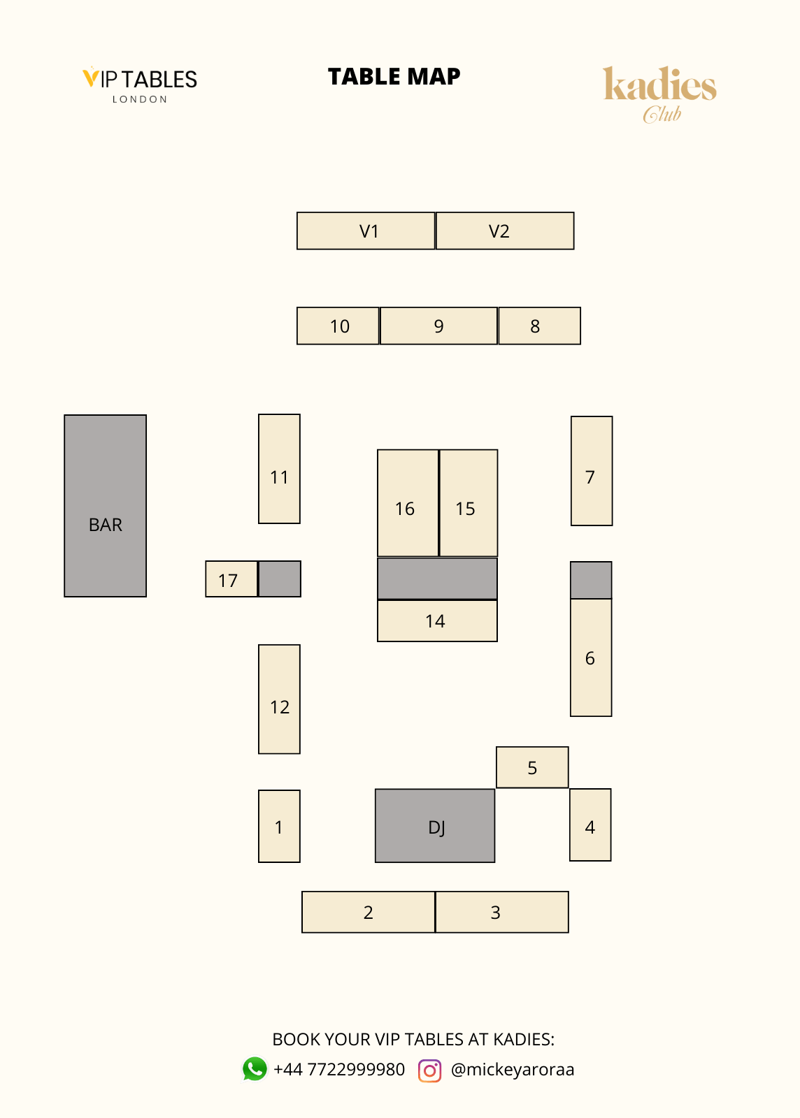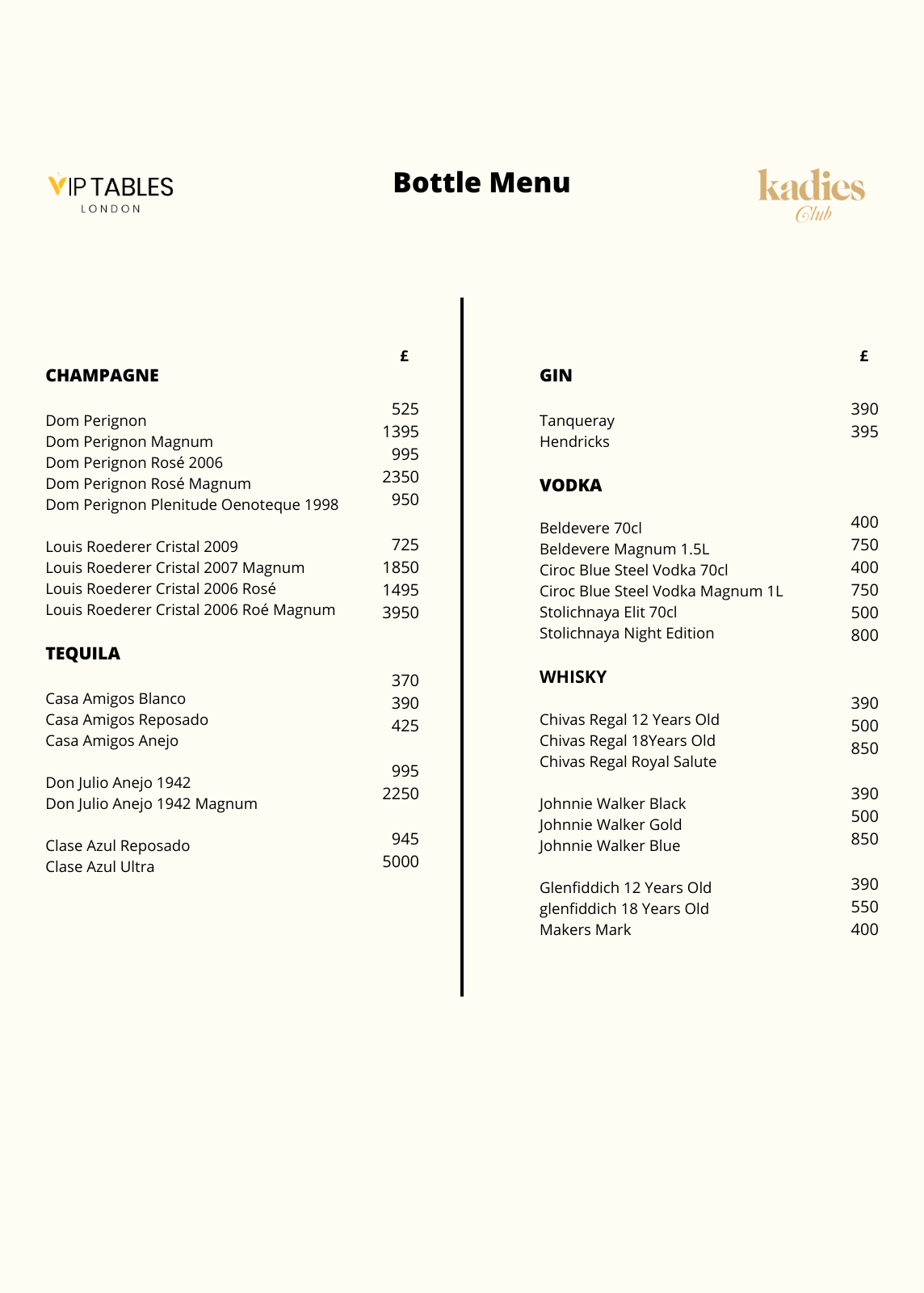 If you want to book a table at Kadies, the starting price is £1000. The price for groups of up to 6 guests varies between £1000 and £2000.