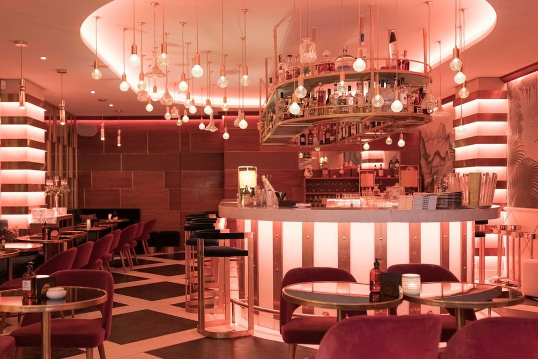 Upon stepping inside, visitors are enveloped by an ambiance adorned in delicate pink hues, sumptuously soft textiles, subtle gold accents, and softly glowing lighting that invokes a Dolce Vita essence. The walls are graced with captivating artwork by Slim Aarons, the American photographer renowned for capturing the jet set and high society of the 1950s, 1960s, and 1970s.