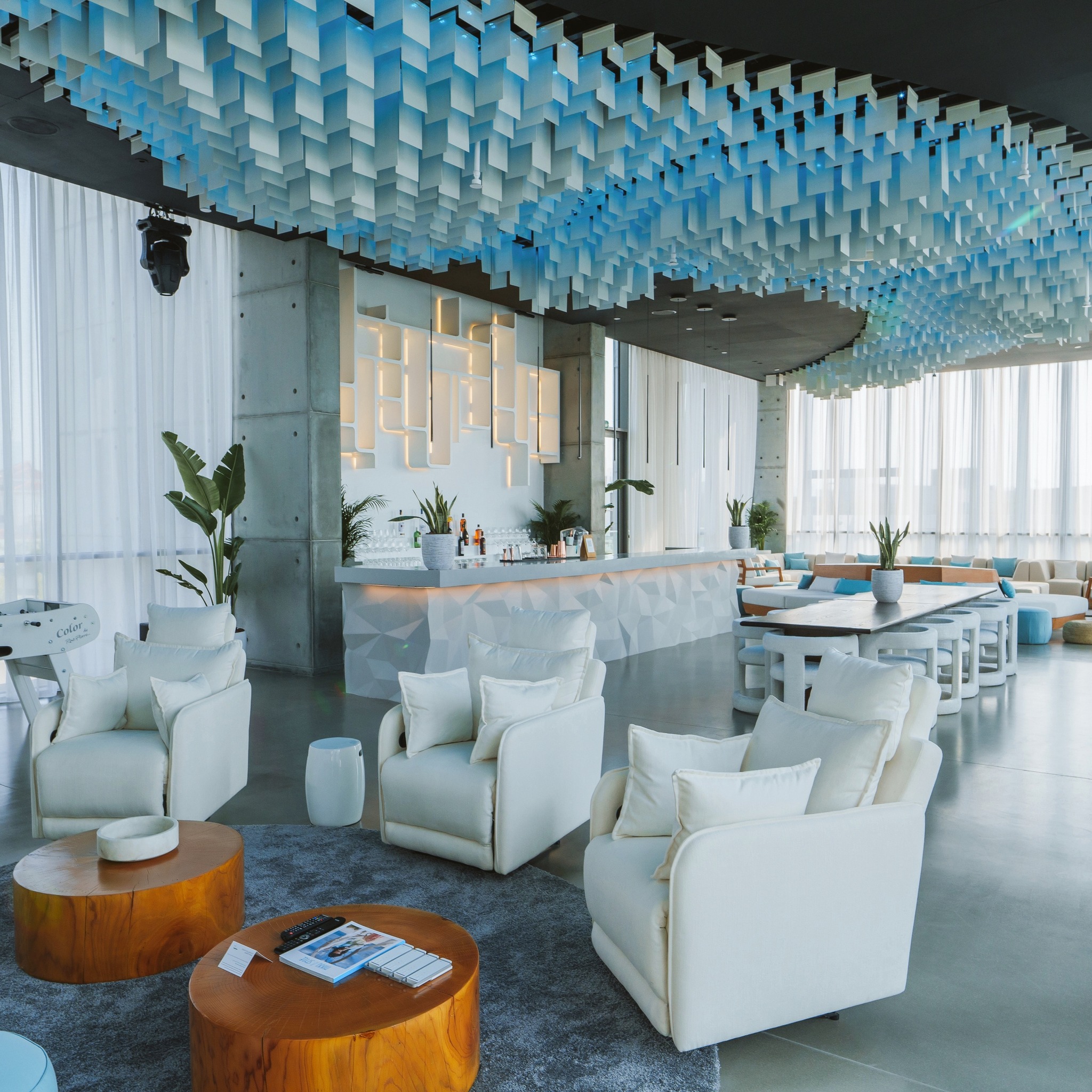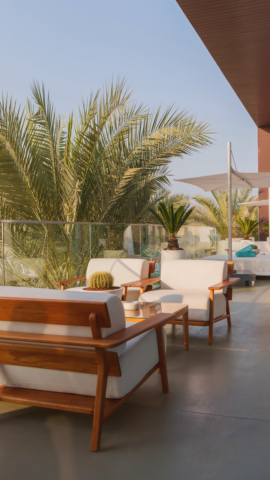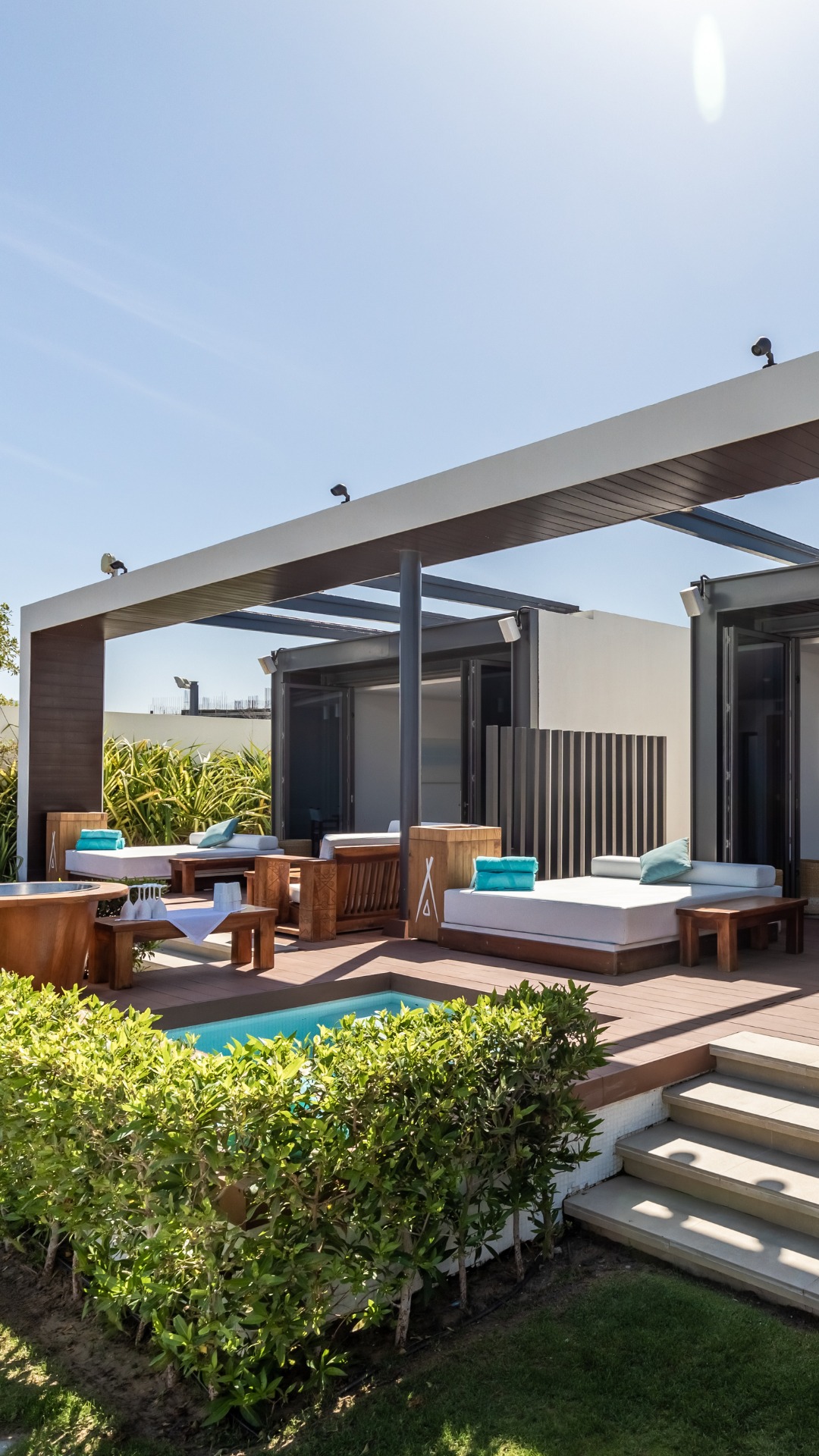 Step into a world where white sunbeds, a clear blue sky, the deep sea, and a sparkling pool dominate the scenery. Nikki Beach Dubai whisks you away to a paradise reminiscent of Caribbean or Maldivian islands. The resort’s color palette is centered around pure white, vibrant blue, and lush green, with palm trees gracing the surroundings and a magnificent central swimming pool. These uncomplicated yet captivating colors radiate elegance, evoking a sense of long-awaited tranquility.