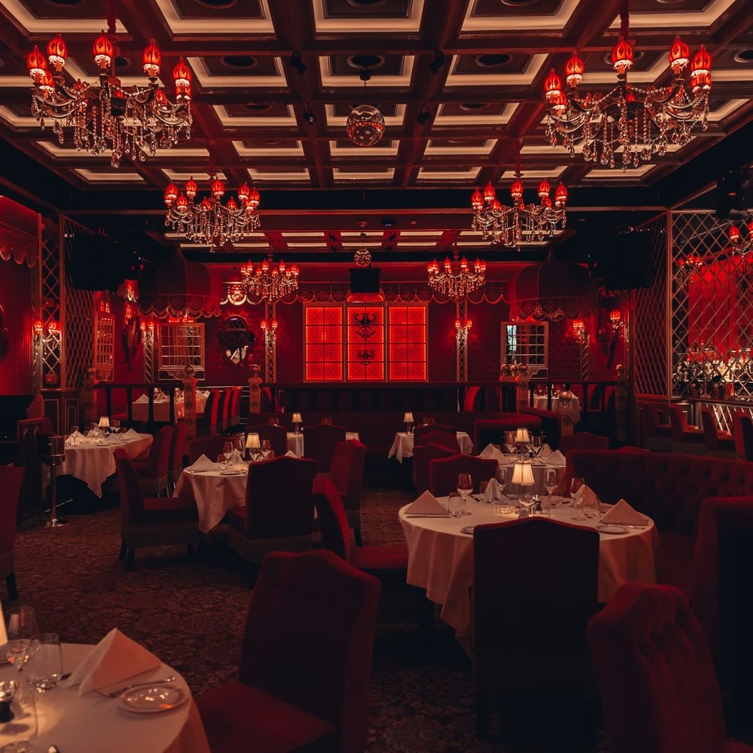 The renowned club boasts rich materials and vibrant hues that serve as the perfect setting for the signature Raspoutine experience. The red velvet seating, vintage chandeliers, stained-glass windows, classic paintings, and intricate woodwork radiate opulence, crafting a refined ambiance. Let the deep house beats guide your moves as you dance until the first light of morning.