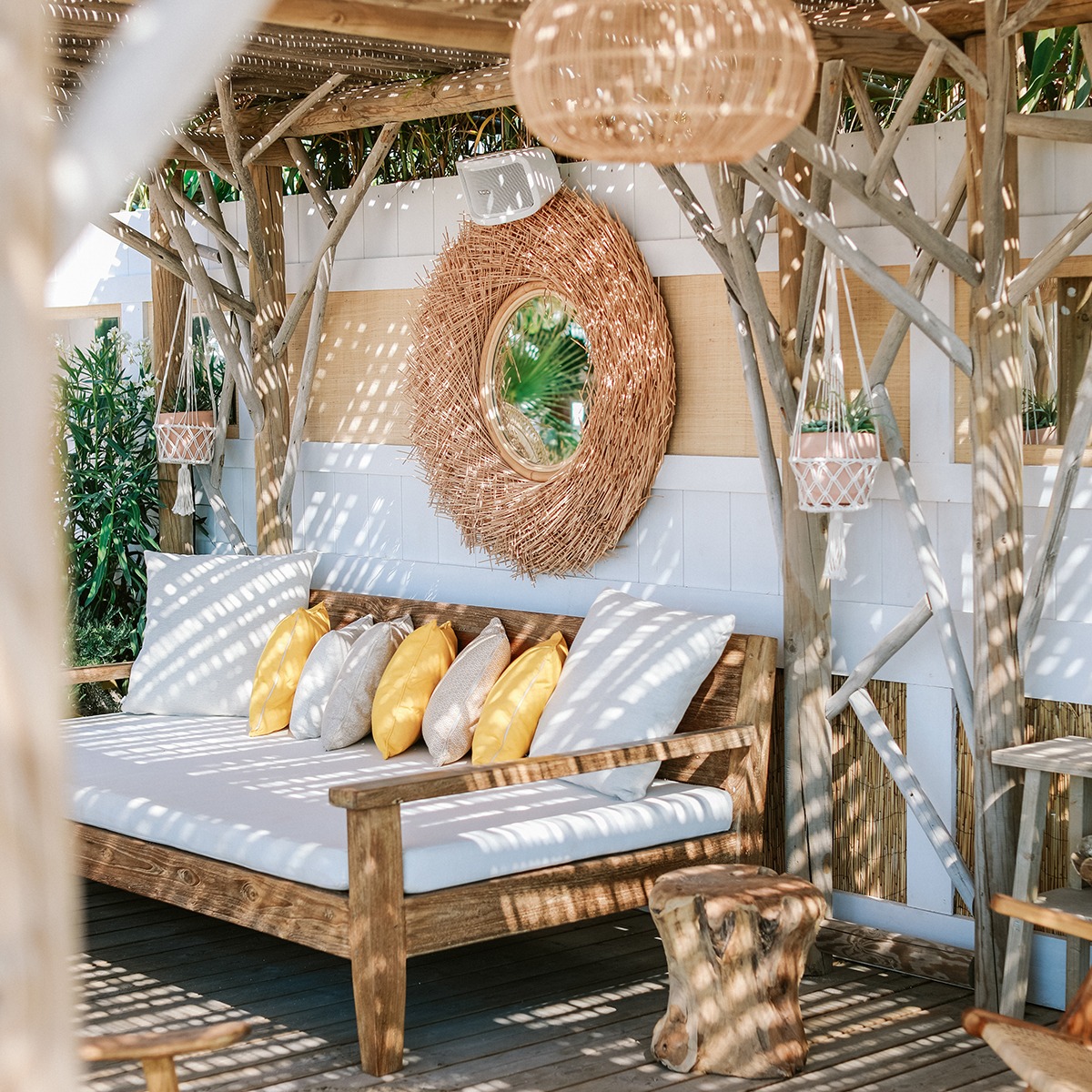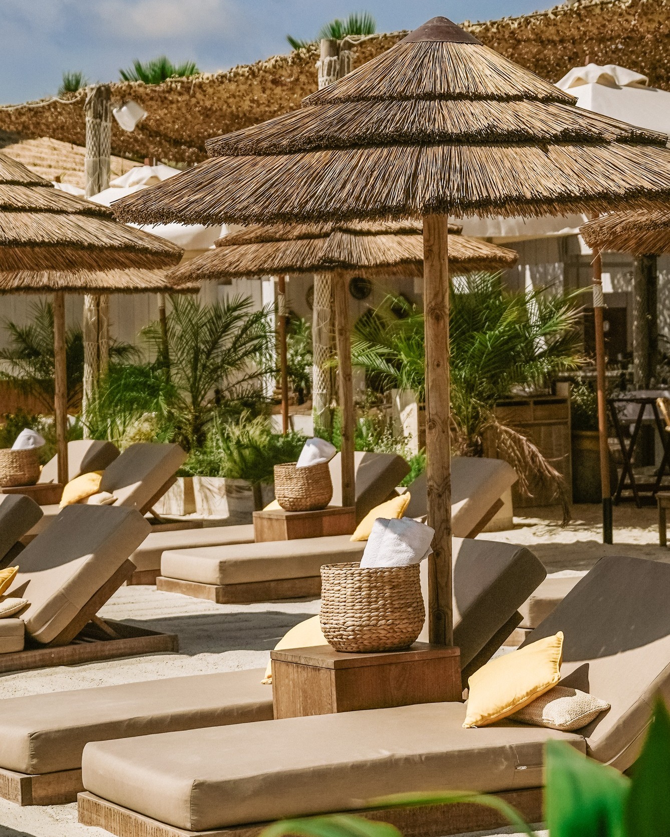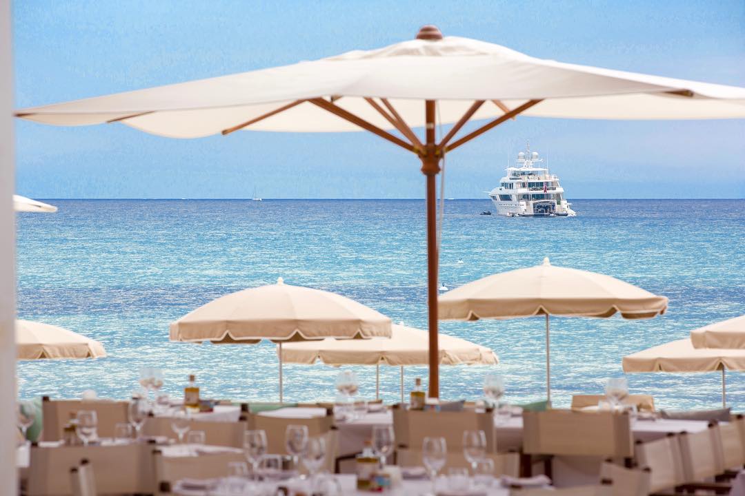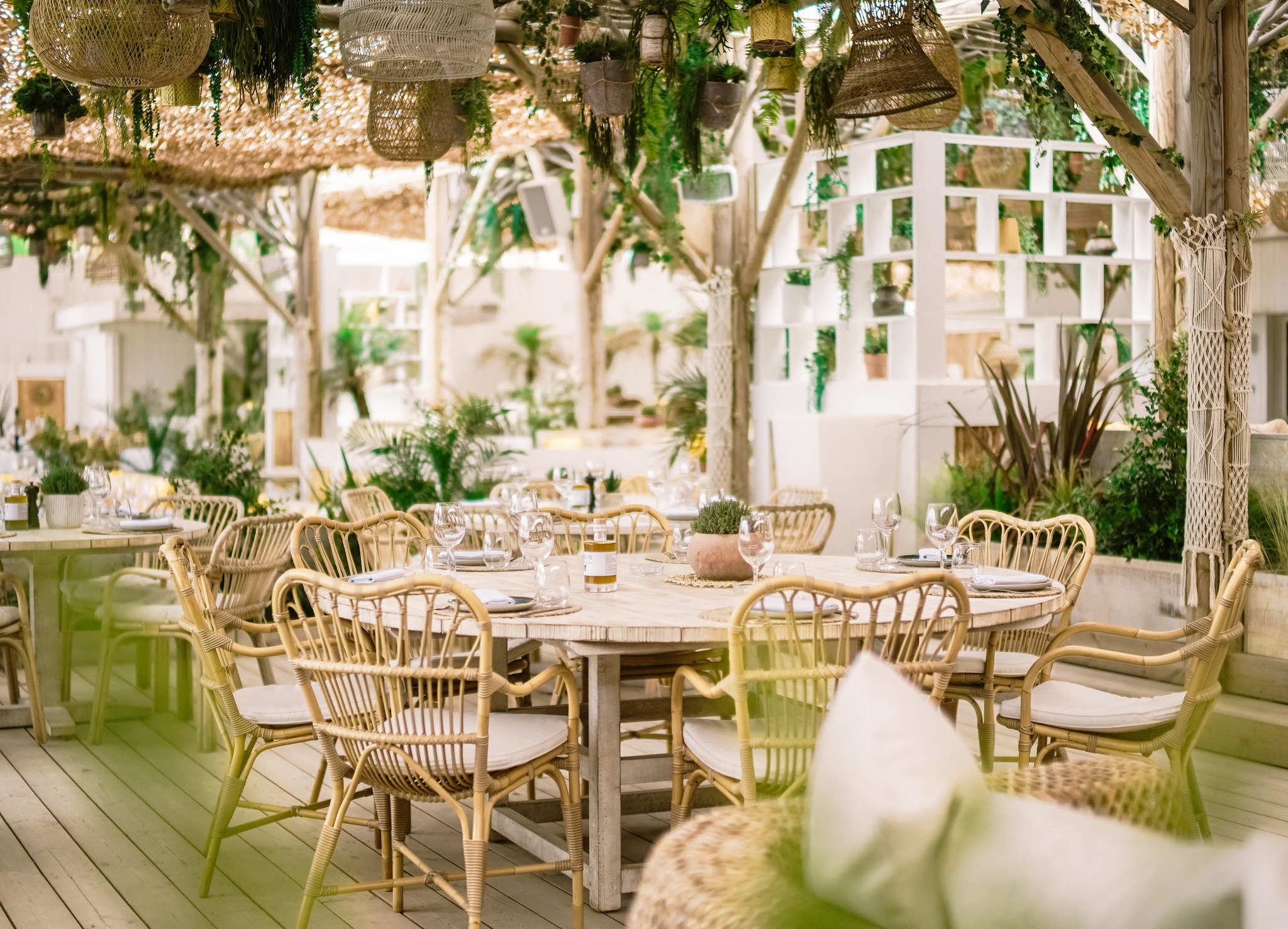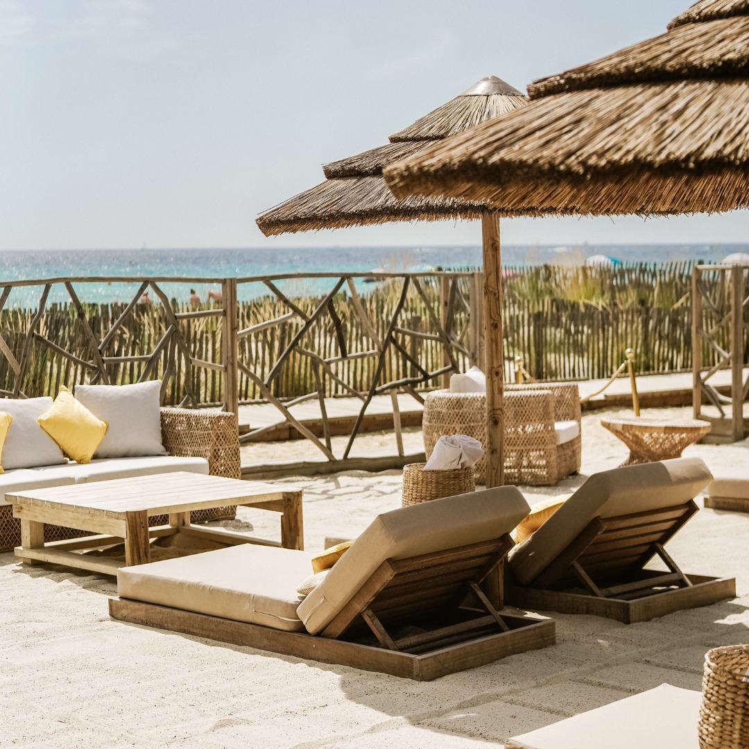 Adorned with bohemian chic decor, Shellona Pampelonne gracefully stretches along the bay of Pampelonne, offering a peaceful setting to lounge on deck chairs and soak up the warm Ramatuelle sun. It’s become a sought-after dining spot, attracting visitors who relish in its delectable cuisine and enjoy the rhythmic ambiance reminiscent of the lively parties in Ibiza and Mykonos.