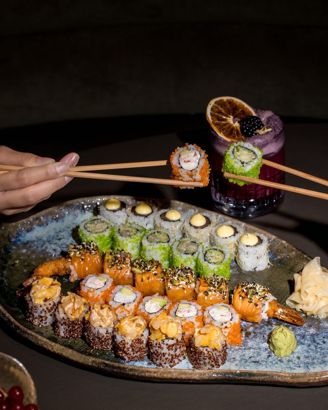 The menu showcases Sumosan’s iconic favorites, now presented against the backdrop of snowy slopes. Guests can indulge in delights such as tuna and truffle rolls, Japanese salmon rice pizza, grilled sea bass with citrus ginger sauce, and Furikake-crusted rack of lamb with mustard sauce. The culinary experience includes innovative and exclusive dishes like black caviar rice pizza and torched sushi creations—such as squid infused with calamari ink powder and unagi served with unagi cotton candy sauce. The element of excitement is enhanced through table-side torching, demonstrating that the enjoyment extends beyond the ski slopes.
