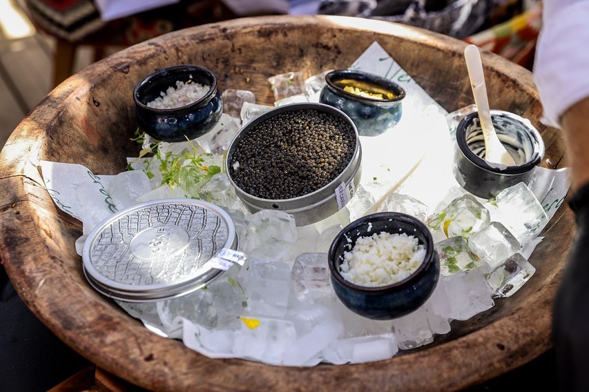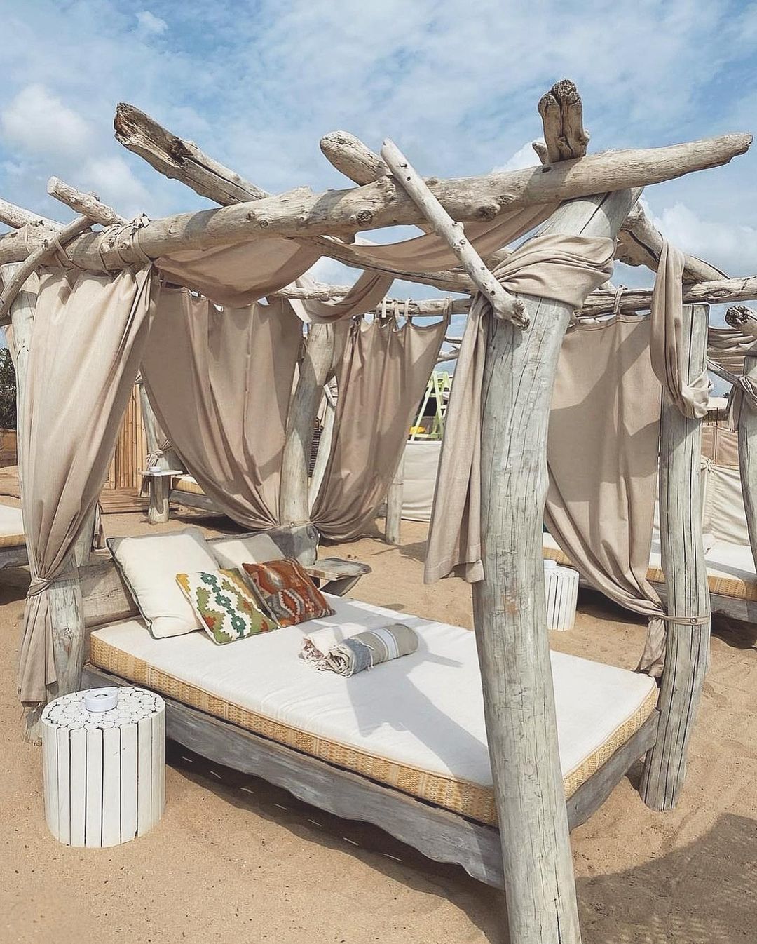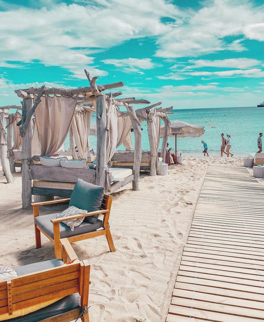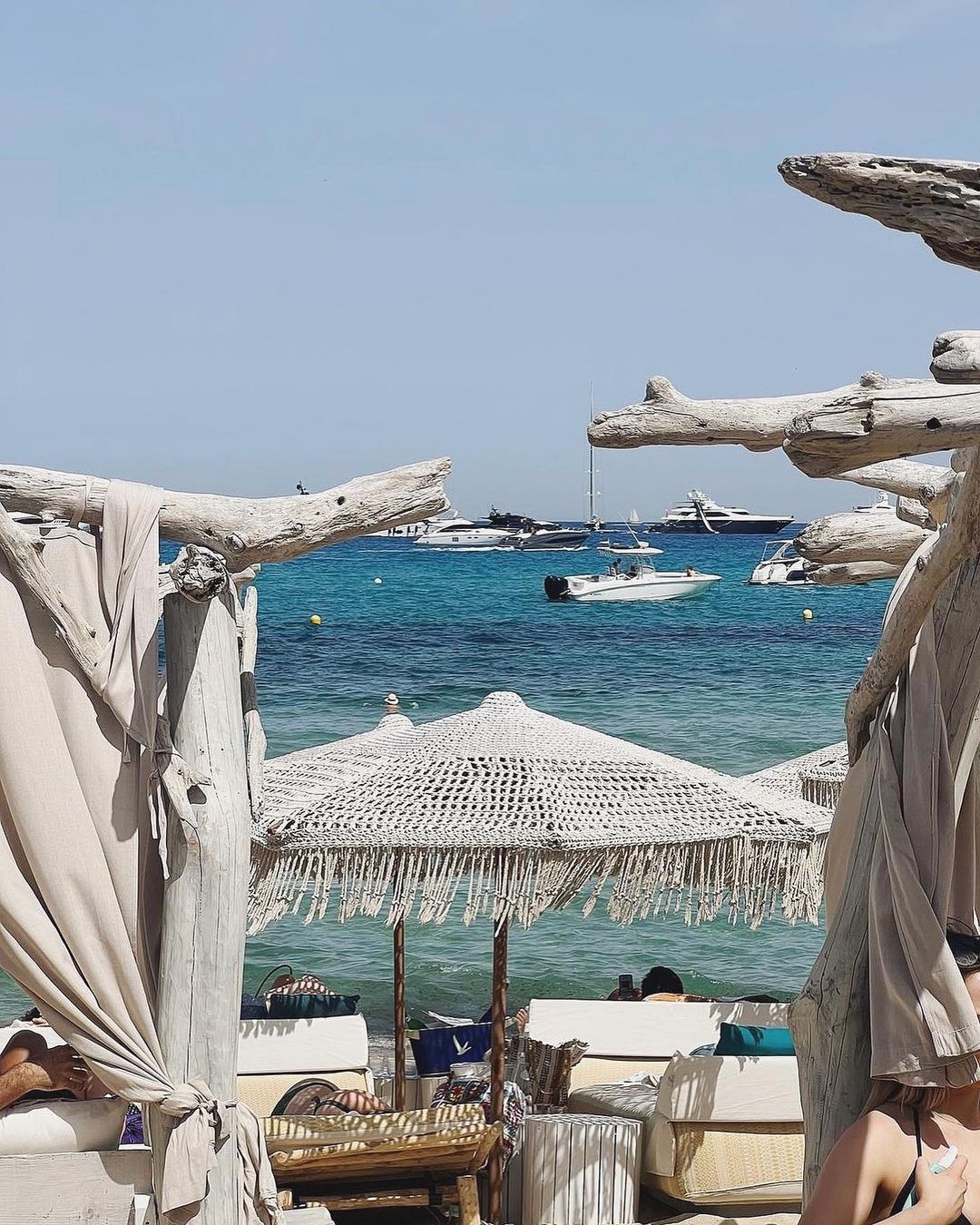 Nestled along Pampelonne Beach, Verde Beach Saint-Tropez offers a picturesque view of lush trees gently swaying by the water. The ambiance combines Parisian cabanas with Provençal charm, creating a charming atmosphere. The boho-chic decor features wood and local vegetation, enhancing the natural allure of the surroundings.
